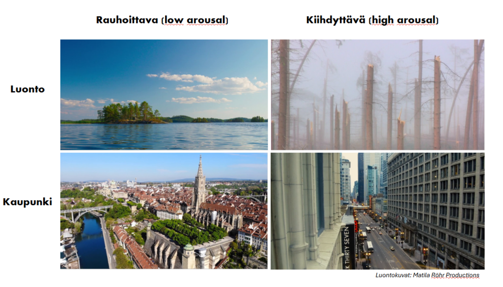 Luontosisällöt herättivät vastaajissa kokonaisvaltaisemmin kehollisia tuntemuksia ja voimakkaampia tunteita.